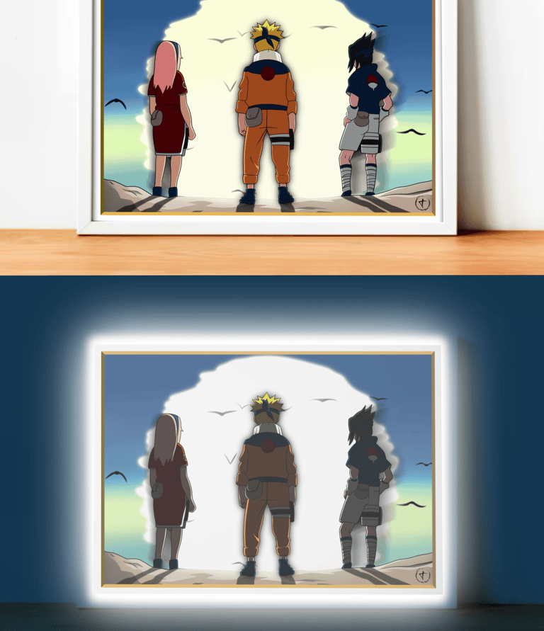cadre LED mettant en scène Naruto Sasuke et Sakura après leur combat contre Zabuza.