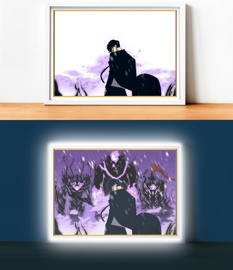 Cadre LED mettant en scène le pouvoir de nécromancie de SunJin Woo